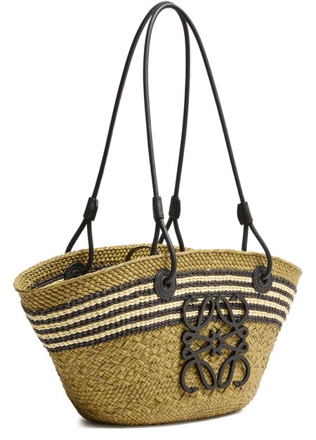 Unveil Loewe's Anagram Stripes medium basket in Iraca palm and calfskin, a testament to exquisite craftsmanship. This open-weave creation showcases a captivating striped print and features double handles for refined elegance. The single compartment ensures practicality, while the front logo adds a signature touch.