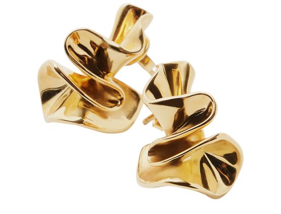 Reveal Bottega Veneta's single earring, a statement piece defined by its twisted details and radiant gold finish. The post-back closure ensures a secure fit, making this accessory a refined addition to any modern jewelry collection.