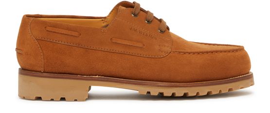JM Weston's Animation derbies showcase a refined elegance with their round toe and closed design. Crafted with visible stitching and a sturdy block heel, these formal shoes feature an engraved logo on the side, embodying sophistication and timeless style for any discerning gentleman seeking to make a lasting impression.