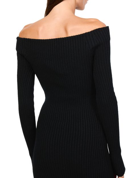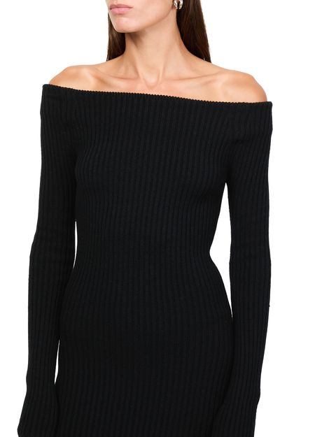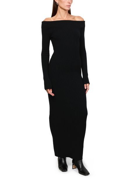 Reveal Max Mara's Arnes knit maxi dress, a masterpiece of modern elegance. This slim fit design features a bare shoulder neckline and long, dropped sleeves, creating a striking silhouette. Crafted with meticulous attention to detail, it offers a sophisticated look perfect for any occasion.