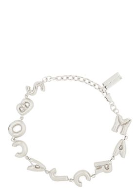 Marc Jacobs's Balloon bracelet showcases a sleek silver finish that catches the light beautifully. Adorned with the brand's logo in silver letters, this piece effortlessly elevates any outfit. Its playful design adds a touch of whimsy, making it a perfect accessory for both casual and sophisticated occasions.