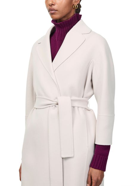 Reveal S Max Mara belted coat, a knee-length silhouette with a refined collar and long sleeves. The tailored fit and elegant belt accentuate the waist, while the classic design ensures versatility for any occasion. Crafted for modern sophistication, this piece seamlessly elevates your outerwear collection.