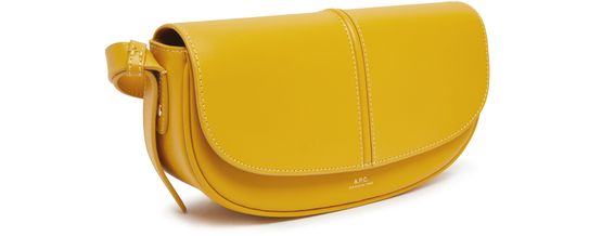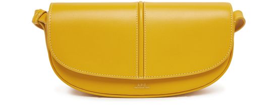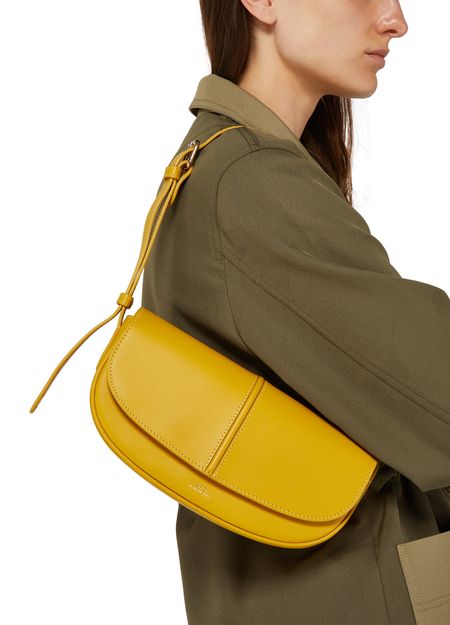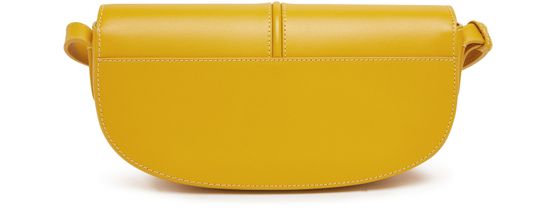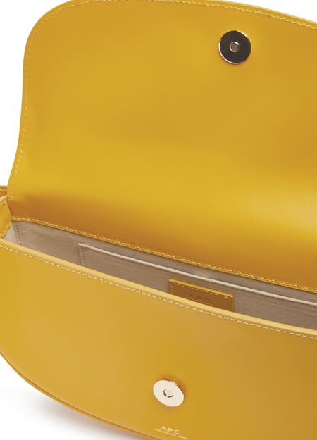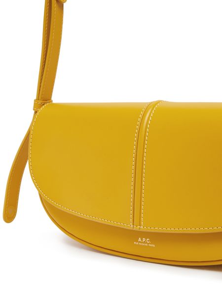 APC's Betty shoulder bag features a snap-button fastening and flap closure for security. The front logo is accented with gold letters for a touch of luxury. It is designed to be worn on the shoulder with its thin, adjustable strap. The open interior pocket allows for easy organization of essentials.
