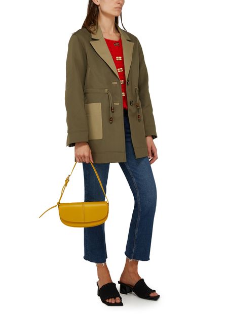 • Description : snap-button fastening, flap closure, logo in gold letters, front logo, worn on the shoulder, thin strap, open interior pocket, adjustable strap.