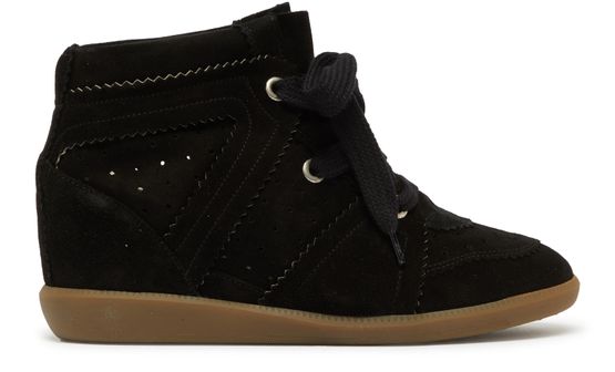 Isabel Marant's Bobby high-top sneakers showcase a stylish design with a high-top upper and a round toe. Featuring laces and a strap for a secure fit, these sneakers boast a printed logo and visible stitching. The flat platform adds a modern touch, making them perfect for any casual occasion.