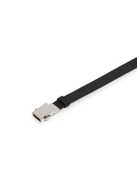 The Row Brian belt is a sleek and versatile accessory for any wardrobe. Crafted from high-quality leather, this belt features a sliding buckle for adjustable sizing and silver-tone hardware for a polished finish. The engraved logo adds a subtle touch of luxury to this classic and timeless design.