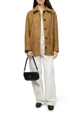 Reveal Coach's Brook Flap shoulder bag, crafted from smooth leather with a refined gold finish. The signature decorative "C" detail and visible topstitching highlight its modern appeal, while the single handle and flap closure offer both style and practicality for everyday sophistication.