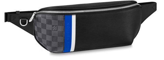 The Bumbag has been restyled to offer an original, casual way to sport the Louis Vuitton signature. The distinctive grain of Epi leather combines with the elegance of Damier Graphite canvas plus bold blue and white stripes. Its secure zipped compartment keeps small essentials close at hand, and the adjustable strap makes it ultra-comfortable to carry.