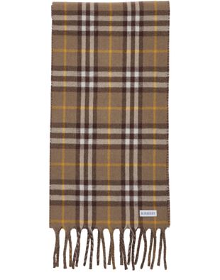 Indulge in Burberry's cashmere scarf with EKD crest, a perfect blend of timeless elegance and modern flair. Adorned with the iconic printed logo and fringed edges, this scarf seamlessly complements any style.