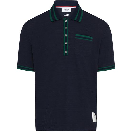 Thom Browne's Cotton polo combines classic style with modern flair. Its short-sleeved design features visible stitching and a front buttoned closure for a tailored look. A breast pocket adds functionality, while patch pockets enhance practicality. The logo at the back label completes this versatile polo-shirt collardo, perfect for any occasion.