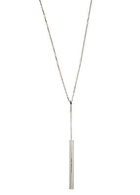 McQueen's Cross-bar chain necklace showcases a striking silver finish that catches the eye. Adorned with a printed logo, this statement piece features a bold front logo that embodies luxury and sophistication. Perfect for elevating any outfit, it is a must-have accessory for those who appreciate exquisite craftsmanship.