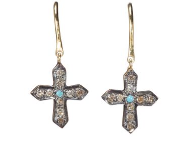 Enhance your look with this pair of cross drop earrings. The Cross T earrings from 5 Octobre, made from silver-plated steel, are two precious crosses with an azure heart.