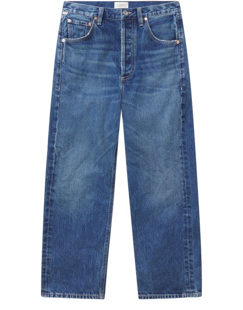 Introducing Citizens of Humanity's Dahlia jeans, where comfort meets style. These denim jeans feature a buttoned and concealed zipper closure, adorned with a back leather logo, offering a laid-back yet polished look. Experience the low-waisted, loose fit design with contrast stitching and belt loops, perfect for any occasion.