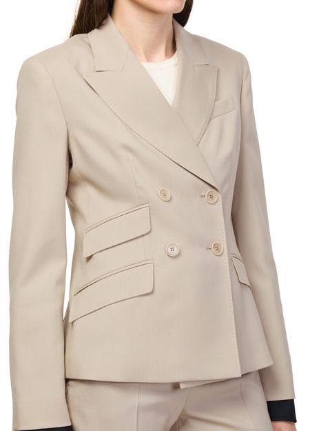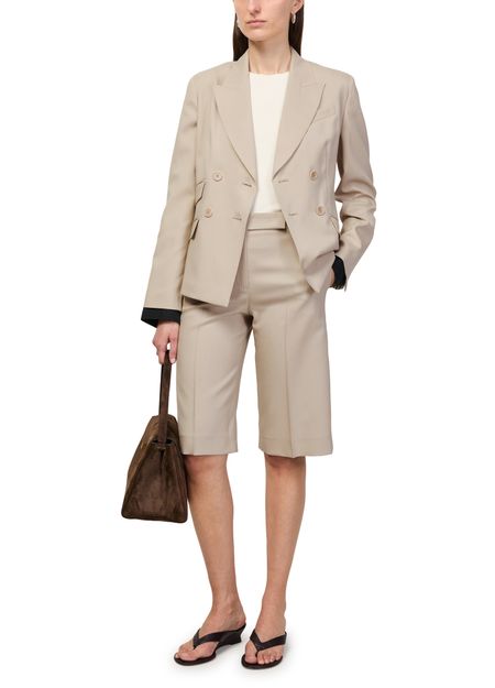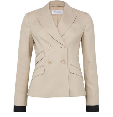 Reveal Max Mara's double-breasted wool blazer, a short silhouette with refined button fastening and long sleeves. Flap and welt pockets add functional elegance, while the classic collar and premium wool construction ensure a polished look. Perfect for elevating both professional and casual ensembles.