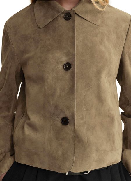 Reveal Arma's suede casual jacket, a short silhouette with refined button fastening and long sleeves. The soft suede texture and distinctive patch detail add a modern edge, making this piece effortlessly versatile for both relaxed and elevated looks.