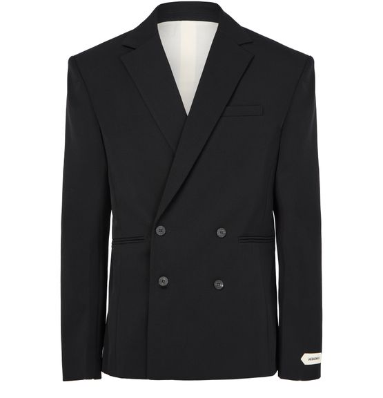 Jacquemus's Fernando jacket showcases a sophisticated double-breasted silhouette with a notched collar, perfect for layering. Its long sleeves and tailored fit offer elegance, while two front pockets and a breast pocket provide practicality. Ideal for transitioning seasons, this jacket combines style and functionality effortlessly, making it a wardrobe essential.