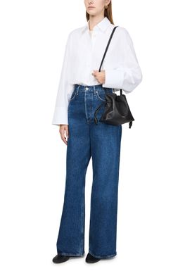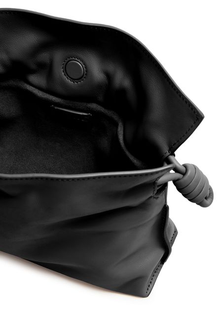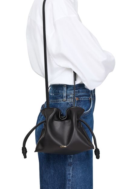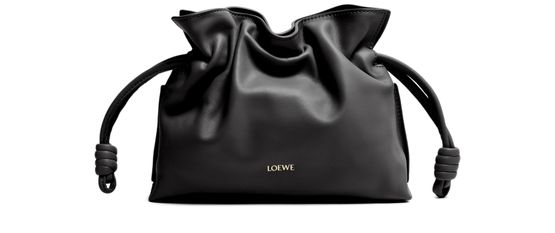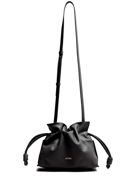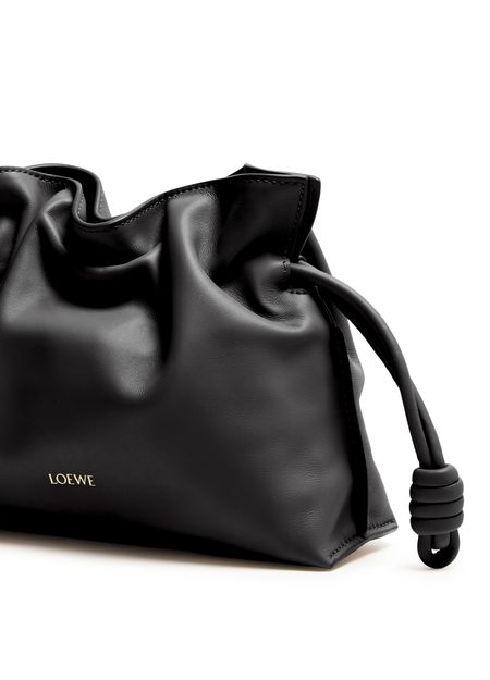 Reveal Loewe's mini Flamenco clutch, crafted from smooth nappa calfskin with a detachable thin strap for versatile styling. The visible stitching and front logo add a refined touch, while the drawstring closure secures your essentials in a single compartment for effortless sophistication.
