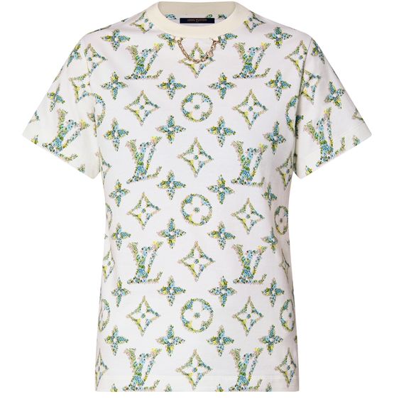 This T-shirt is crafted from soft, comfortable cotton jersey featuring an allover print of the collection’s oversized floral Monogram motif for a graphic yet romantic seasonal signature. Crafted in a timeless straight-cut shape with a ribbed crew neckline, which is trimmed with an LV chain detail for a final House touch.
