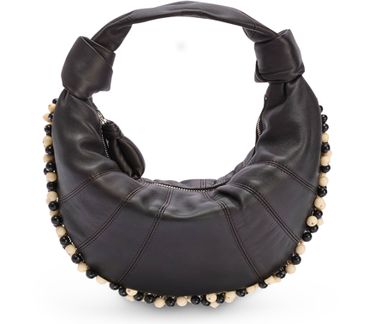 Lemaire's Fortune mini bag with beads is a chic bag, perfect for hand carrying or worn on the shoulder. Its single compartment features interior patch pockets, while the zipper closure secures your essentials. Visible topstitching and an appliquéd logo add elegance, complemented by a wide strap for effortless style.