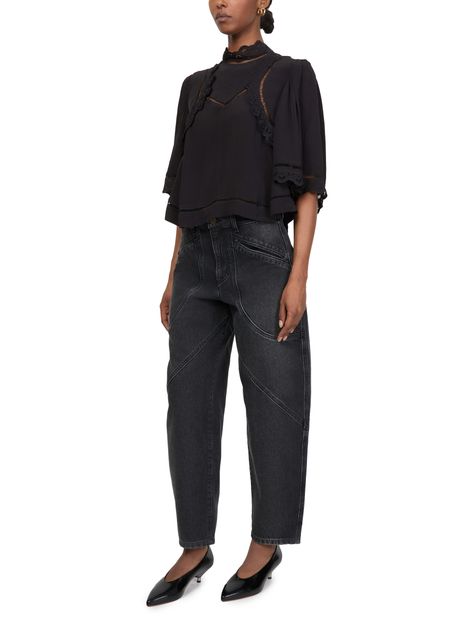 Discover Isabel Marant's Frany short sleeve top, a chic addition to your wardrobe. This blouse features an elegant high-neck and raglan sleeves, perfect for a modern silhouette. Crafted in a cropped length, it pairs seamlessly with high-waisted trousers for a refined look.