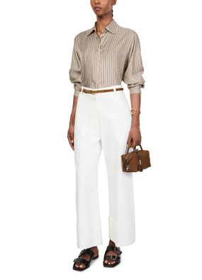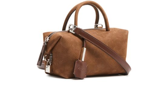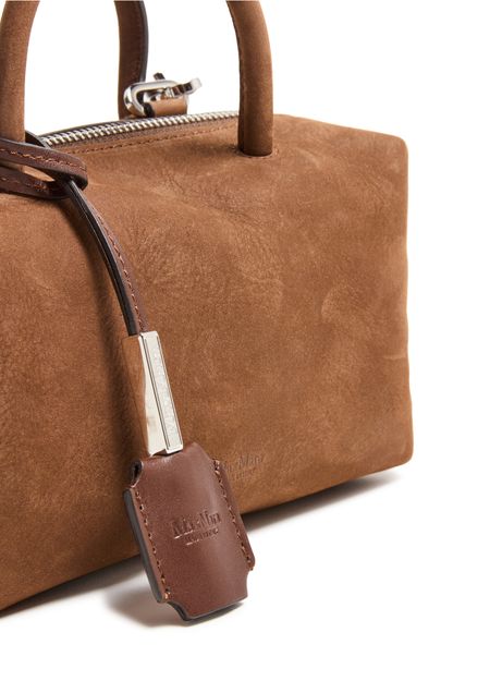 Elevate Max Mara's Holdall suede handbag with its double handles and detachable thin strap, combining functionality and style. This crossbody or shoulder bag features a chic zipper closure, visible topstitching, and a sleek silver finish, all crafted in luxurious suede for an effortlessly elegant look.