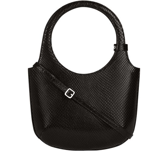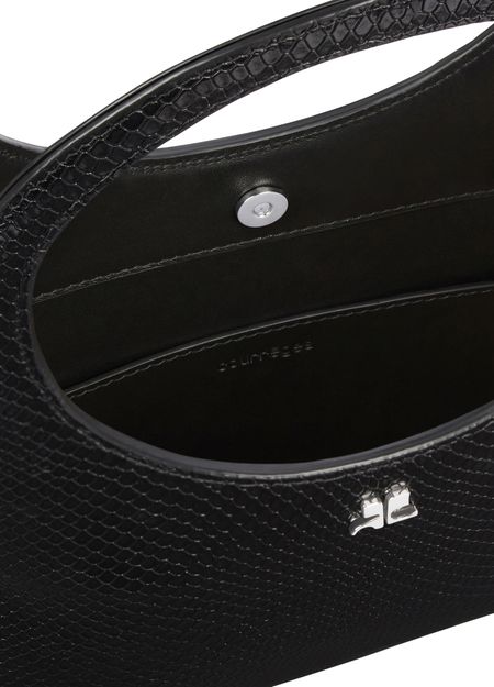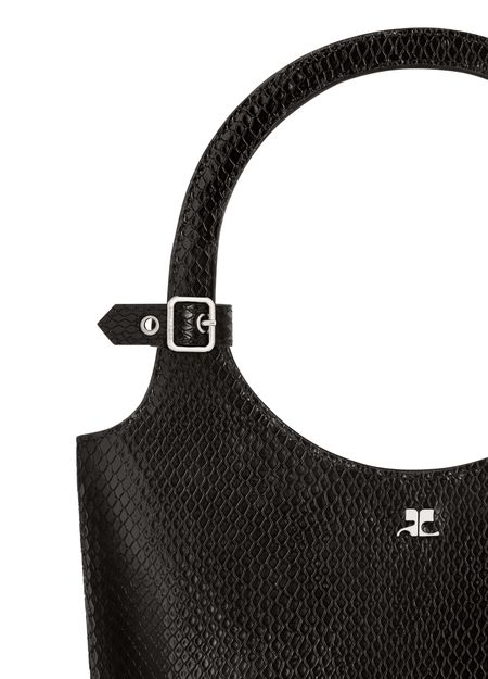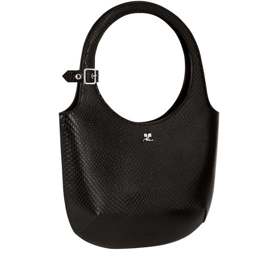 Indulge in Courreges's Holy Viper handbag, a statement piece that combines a sleek snakeskin pattern with a metallic logo on the front. Featuring double handles and an adjustable thin strap, it offers versatile carrying options. The silver finish and snap-button fastening add a touch of elegance to its single compartment interior.