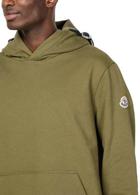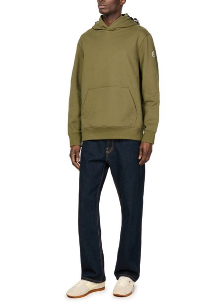 Introducing Moncler's hoodie sweater - a masterful blend of comfort and style, featuring a side logo, appliquéd logo, visible stitching, a practical kangaroo pocket, long sleeves, a cozy hood, and cuffed sleeves.