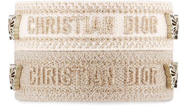• Description : Christian Dior signature embroidered on front, butterfly detail, matte gold-finish metal, sliding tassel closure, this set contains two bracelets.
