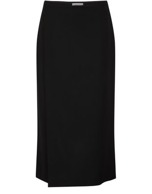 The Row's Kavi long skirt offers a chic midi silhouette with a straight cut, perfect for effortless elegance. Its visible stitching adds a touch of sophistication, while side pockets enhance practicality. A subtle logo at the back label signifies refined style, making this skirt a versatile addition to any wardrobe.