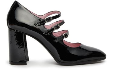 Carel's Keel pumps are crafted from patent leather with a sleek and modern design. They feature a comfortable block heel and very thin sole, giving them a sophisticated silhouette. The addition of buckled straps adds a touch of edginess to this timeless pair, making them perfect for any occasion.