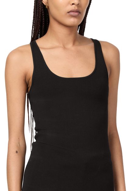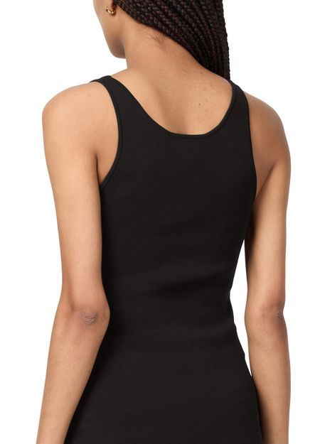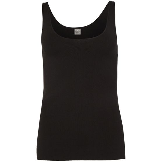 Toteme's Knit tank top showcases a sleeveless silhouette with a round neck, perfect for layering or wearing solo. Its fitted waist flatters the figure, while the appliquéd logo adds a touch of sophistication. Regular length and visible stitching complete this essential piece for effortless style in tanks and camisoles.