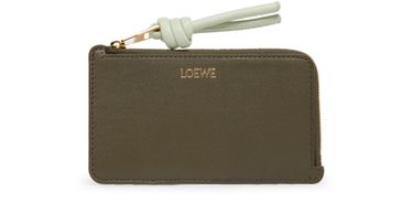 The Loewe Knot Card Case is a sleek and practical accessory that combines the functionality of a cardholder and coin purse. Crafted from smooth leather, it features a zipper closure for secure storage. The front logo adds a touch of sophistication to this versatile and stylish accessory.