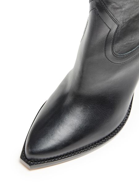 Isabel Marant's Leyane ankle boots showcase a stylish high-top upper with a pointed toe, perfect for elevating any outfit. The medium heel offers comfort, while the pull tabs adds a modern touch. Visible stitching enhances the design, making these closed boots a must-have for the fashion-forward individual.