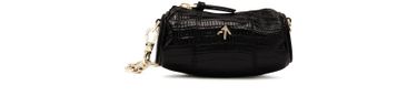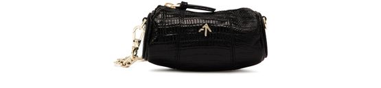 The cylinder-shaped Lizard mini bag is designed by Manu Atelier. It can be carried in the hand as a clutch, or over the shoulder with its chain strap.