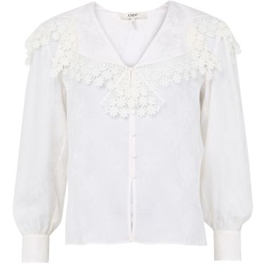 Introducing Chloé's long sleeved shirt, a masterpiece of elegance with its V-neck and floral embroidery. The button fastening adds a touch of sophistication, while the long sleeves ensure a graceful silhouette. Perfect for any occasion, this top effortlessly combines style and versatility.