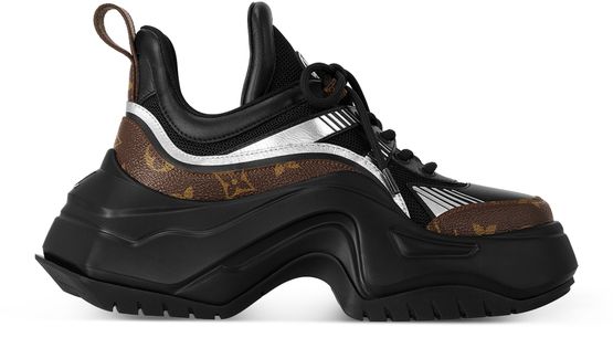 The LV Archlight 2.0 platform sneaker takes inspiration from the cult LV Archlight sneaker, designed by Nicolas Ghesquière. This version comes in a mix of technical materials with trim in Louis Vuitton's iconic Monogram canvas. This on-trend style is notable for its graphic, oversized outsole and exaggerated tongue, which is signed with an LV Circle logo.