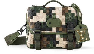 Creative Director Pharell Williams brings his eye-catching pixelated Damoflage coated canvas to this LV Trail Messenger. Damoflage is the mixture of the House’s classic Damier motif with camouflage, the union between the polished refinement of the urban landscape and the untamed allure of the natural world. The bag features Williams’ new signature fast-release buckle.