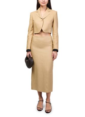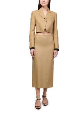 Reveal Max Mara's Pencil midi skirt, a refined midi silhouette with a sleek back panel and subtle back slit. The back zipper closure ensures a seamless fit, while the tailored pencil shape flatters every curve. Effortlessly transition from day to evening with this versatile, modern essential.