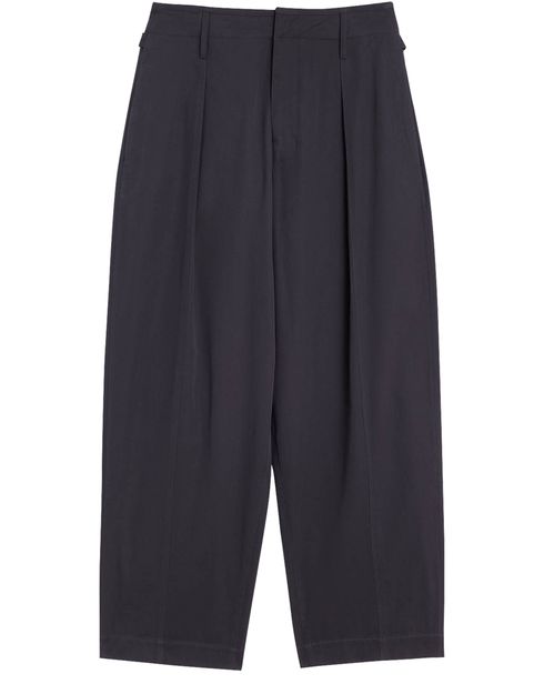 Description : belt loops, back darts, concealed zipper closure, visible stitching, welt pockets, side pockets, back pocket, loose fit, silver finish, ankle length.
