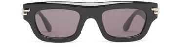 Bottega Veneta's Mitre Rectangular sunglasses showcase a striking square shape with a sleek silver finish. Tinted lenses offer a touch of mystery, while the thick temples provide durability and style. Perfect for those who seek sophistication and a bold statement, these sunglasses elevate any ensemble effortlessly.