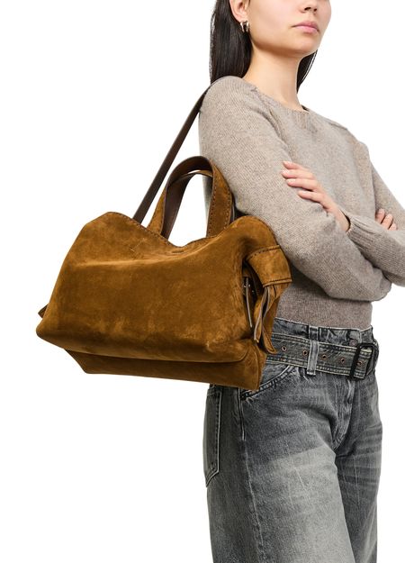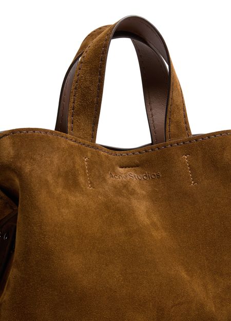 Reveal Acne Studios's Musubi tote bag, crafted with a padded texture and visible stitching for a refined finish. The wide strap and double handles offer versatile carrying, while the spacious interior and zippered pocket ensure effortless organization. An embossed logo adds a signature touch to this modern accessory.