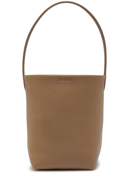 Introducing The Row's N/S Park Tote small bag, a masterpiece crafted from grained leather. This tote features a single handle and visible topstitching, highlighting its refined craftsmanship. The engraved logo adds a touch of elegance, while the single compartment ensures functional sophistication.