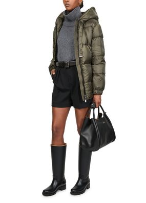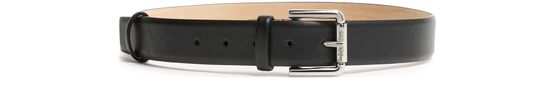 Unveil Max Mara's new buckle belt, crafted from smooth leather and featuring an adjustable clasp for a perfect fit. Its brand's signature buckle showcases silver-tone hardware, embodying elegance. Designed for versatility, this tie belt is perfect for both formal and casual ensembles.