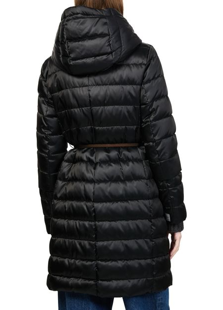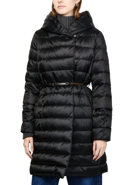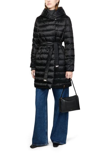Introducing Max Mara's Novef puffer jacket - THE CUBE, a sleek addition to your wardrobe. Crafted from satin-finish leather, this long-sleeved piece features a high neck and button fastening for a refined silhouette. The padded texture and concealed closure enhance its modern appeal, perfect for versatile styling.