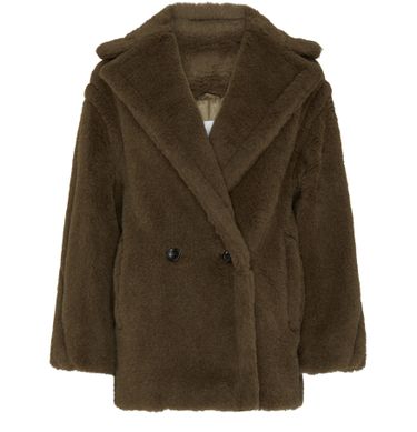 Max Mara's Olga short coat showcases a classic silhouette with a double-breasted front buttoned closure. Its notched collar adds sophistication, while the appliquéd logo and logo at the back label emphasize elegance. With side welt pockets and long sleeves, this coat is the perfect blend of style and practicality for any occasion.