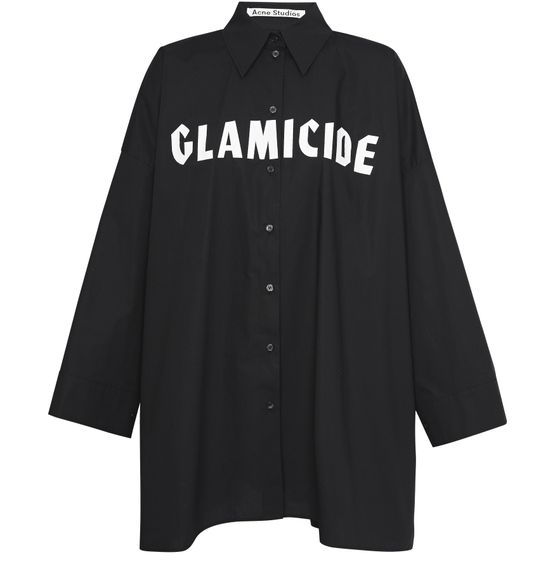Get an androgynous look with the Suky oversized shirt from the Swedish label Acne Studios. The quirky text and the extra large cut make it a very original top.
