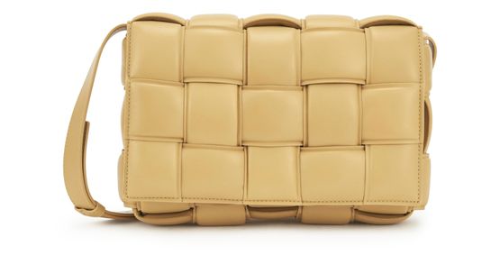 Bottega Veneta's Padded Cassette bag is a luxurious Intrecciato leather shoulder strap bag featuring the brand's signature Intrecciato weaving. The unlined design includes a zippered interior pocket and gold metal finishes. The slender adjustable shoulder strap with triangular buckle allows for versatile styling, while the flap closure with magnetic press-stud ensures secure wear when worn on the shoulder.