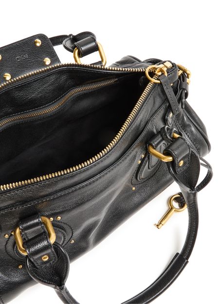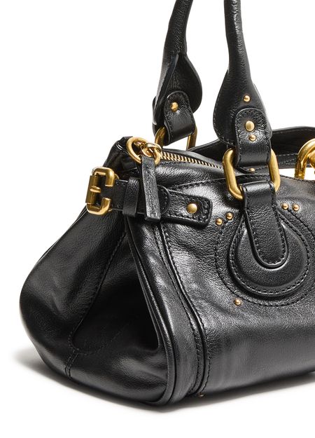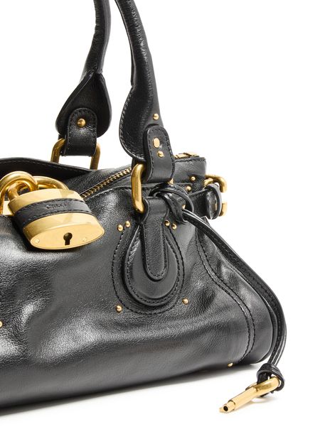 Reveal Chloe's Paddington handbag, crafted from smooth leather with signature saddle stitch and contrast stitching. Double handles and a gold clasp add refined appeal, while a zippered interior pocket and large compartment ensure practical elegance. The engraved front logo and gold finish complete this sophisticated shoulder bag.