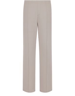 Embrace Dior's pants with Christian Dior Couture Lily of the Valley embroidery, showcasing exquisite craftsmanship with delicate creases and an elastic waistband. Ideal for a polished look, these pants feature side slit pockets and rear piped pockets for added functionality.
