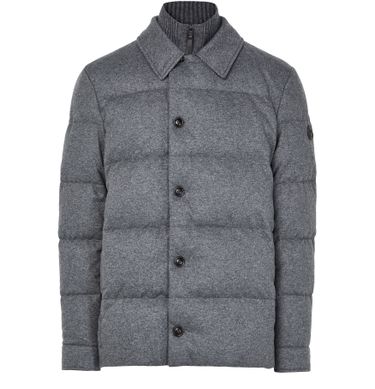 Introducing Moncler's Pres shirt doudoune, a short puffer jacket that redefines style with its warm fabric and padded texture. The high neck and long sleeves offer a sleek silhouette, while the button fastening adds a touch of elegance. An embroidered logo completes this versatile piece, perfect for any occasion.